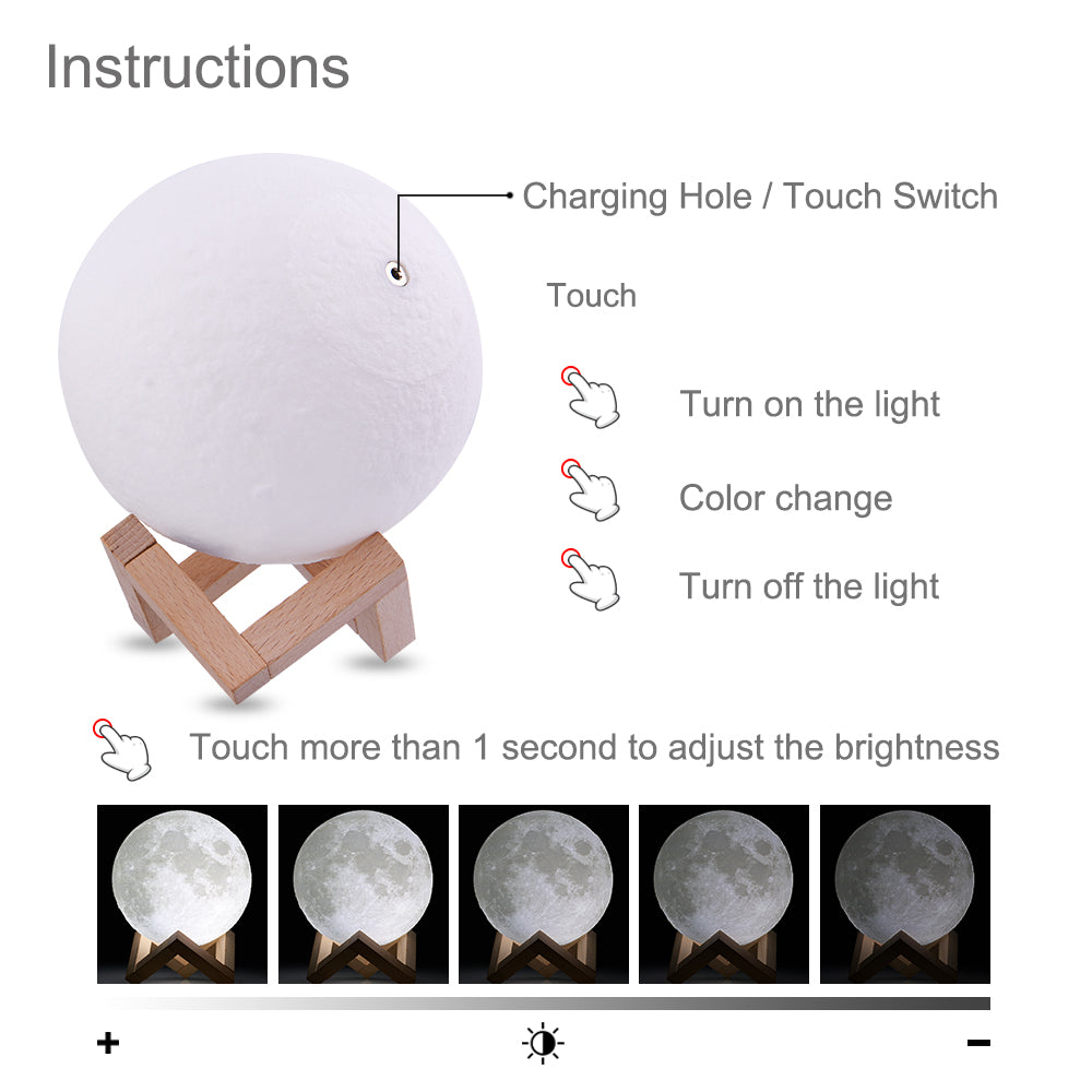 1. Moon lamp can adjust the brightness, full of mystery and romance. It is a dreamy creative gift for Christmas, Valentine's Day, birthday, party, wedding, anniversary, housewarming, lover, children, children's bedroom, living room, nursery.